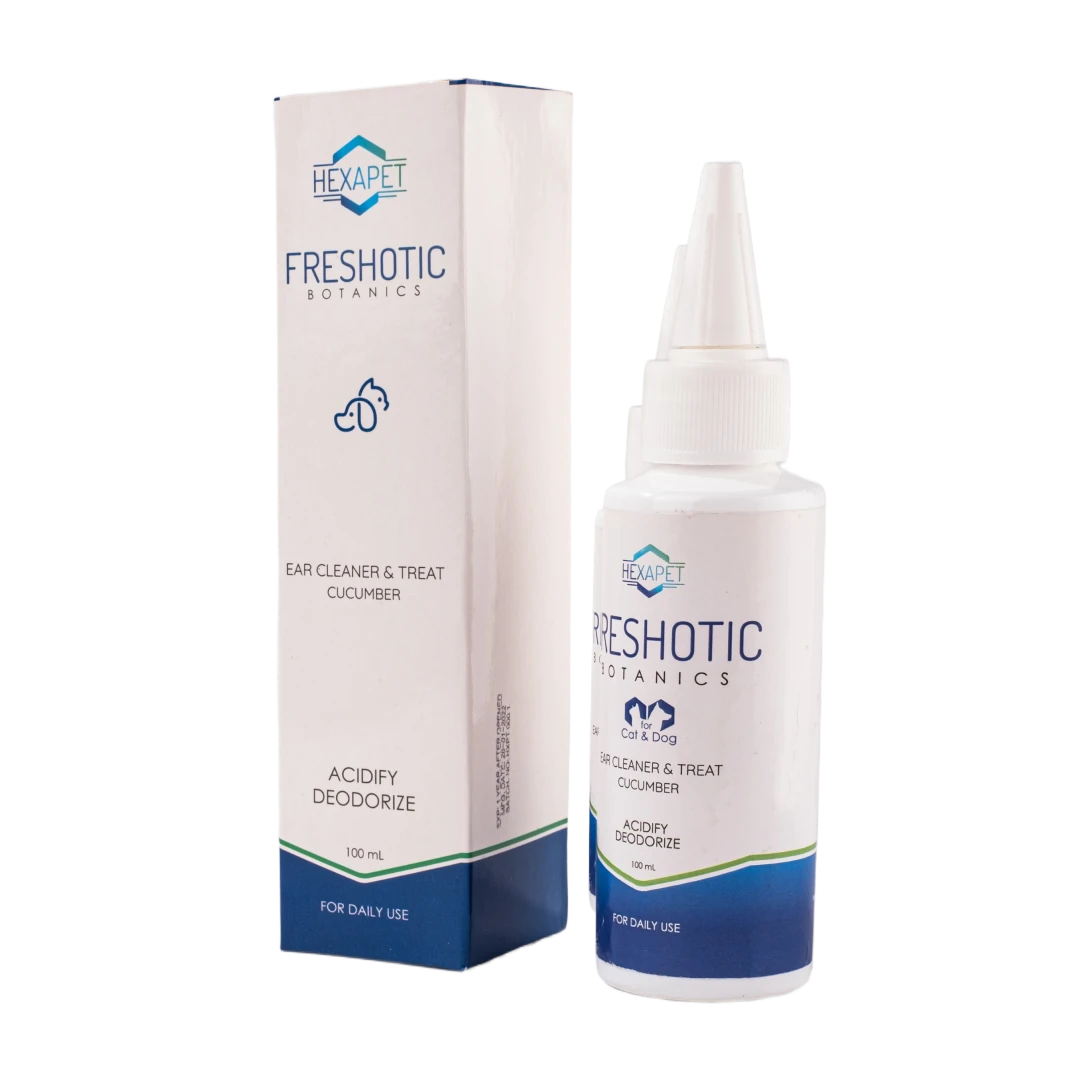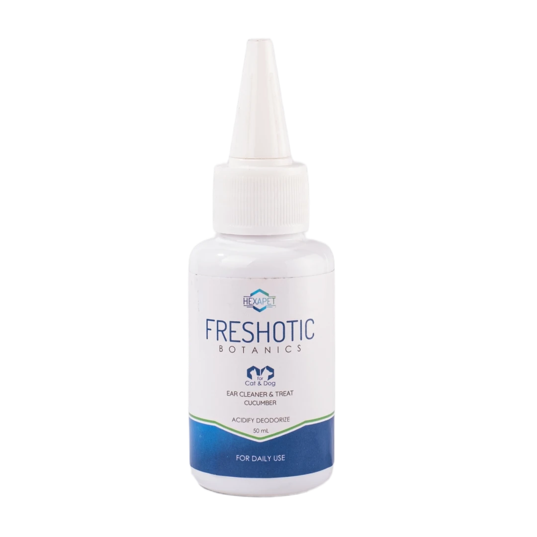 A safe and effective liquid ear cleaner that removes earwax, treats earmites, and helps care for otitis externa/media. Enriched with cucumber extract to maintain ear moisture.